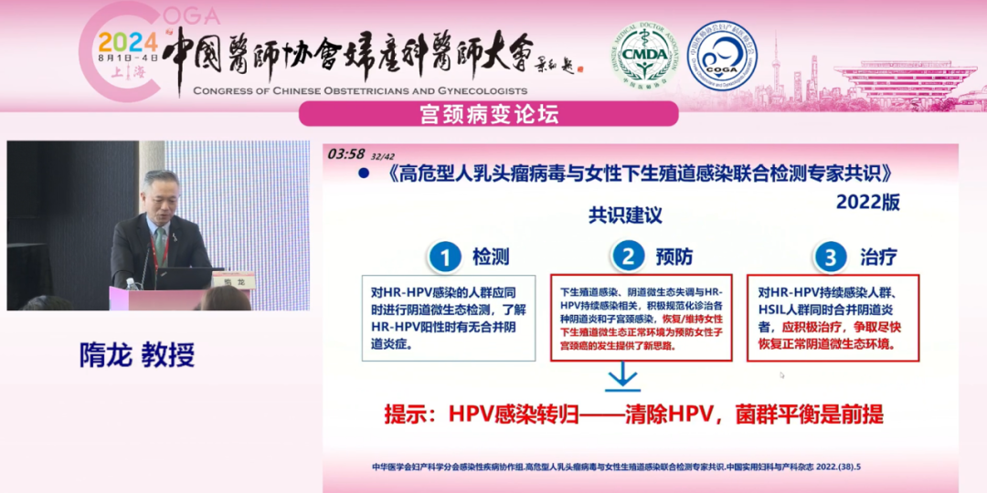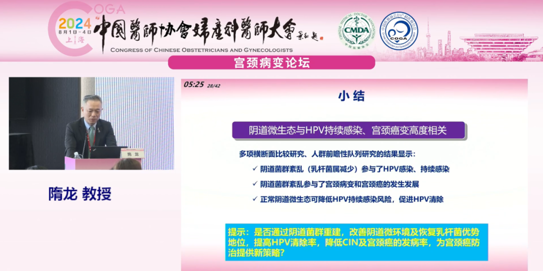 復(fù)旦大學(xué)附屬婦產(chǎn)科醫(yī)院隋龍教授就《陰道微生態(tài)調(diào)節(jié)與HPV轉(zhuǎn)歸》為題進(jìn)行報告: