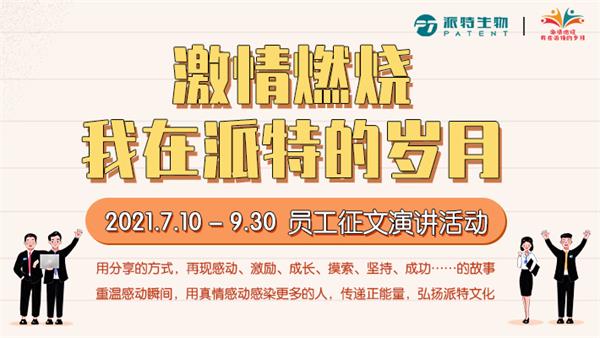 “激情燃燒-我在派特的歲月”員工征文演講活動,經(jīng)過征文評選、演講初賽評選等環(huán)節(jié)的層層選拔,現(xiàn)已在全國范圍內(nèi)評選出15位選手進入演講總決賽。