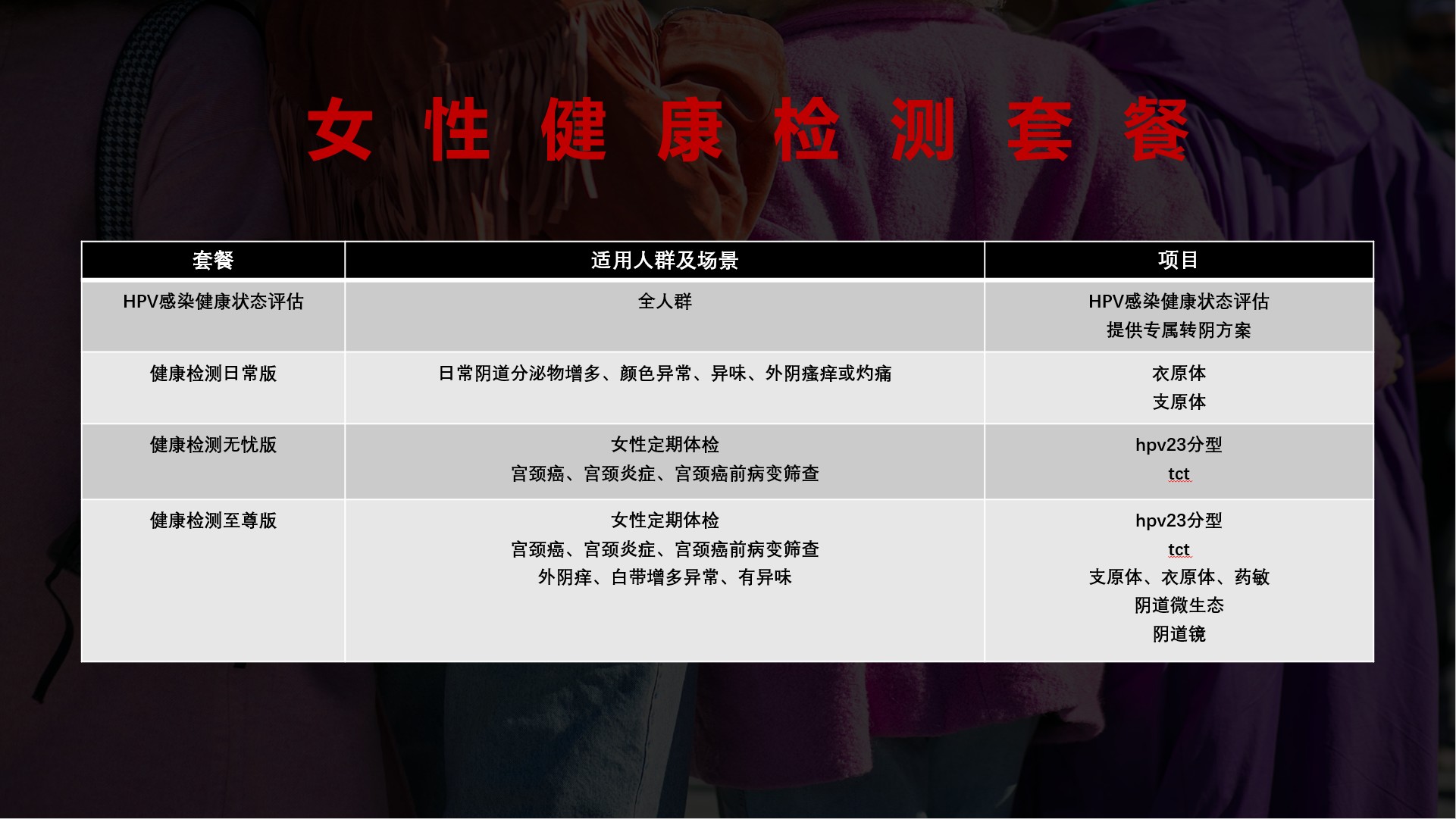 (派特生物WOMEN計(jì)劃目前涵蓋檢測套餐)