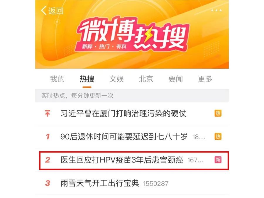 近日,微博上的一條熱搜引起了大家的關(guān)注——“醫(yī)生回應(yīng)打HPV疫苗3年后患宮頸癌”。截止截稿,該話題已被2.4億人瀏覽、討論。